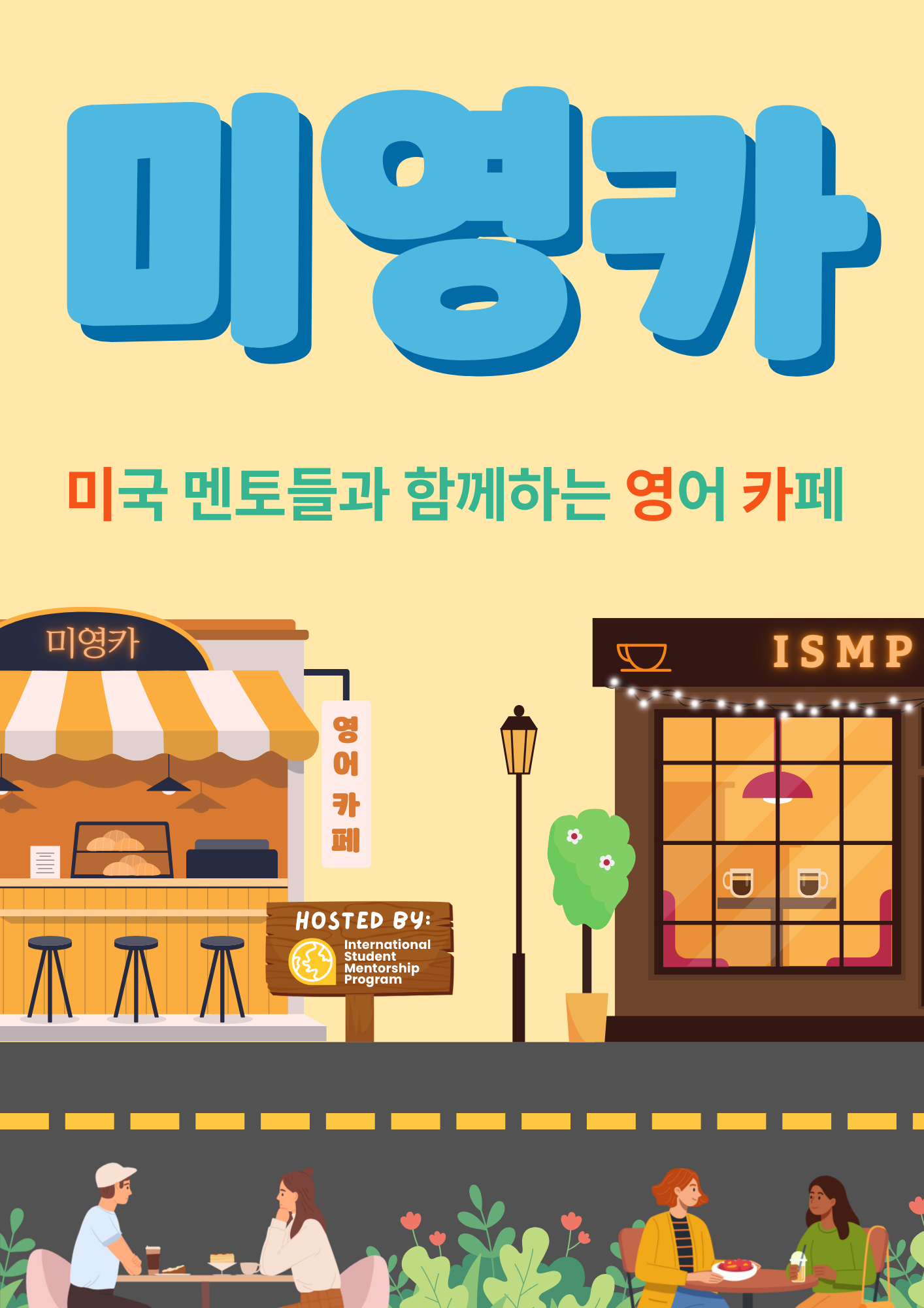 In Korea, ISMP's primary program is called 미영카. All of the mentors who run 미영카 are ISMP volunteers. Our focus is helping college students improve their real-life English through small-group conversation, personalized feedback, and mentorship.